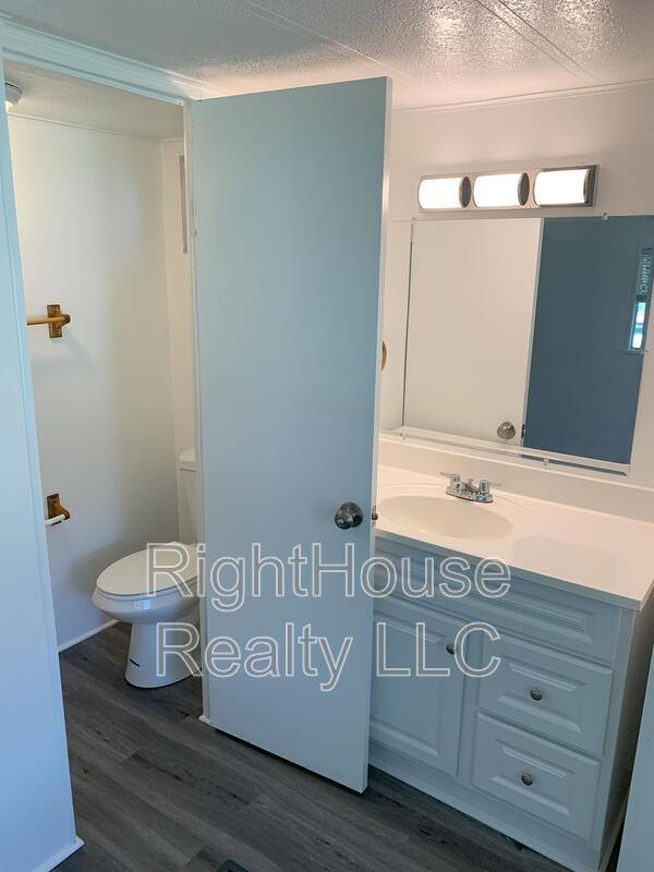 Fully renovated 3 bedroom, 1 bathroom mobile home. New kitchen cabinets, range, refrigerator, washer and dryer. new bathroom vanities, new flooring, fixtures, ceiling fans, fresh paint, and new doors. Large patio, fenced yard, double carport, workshop/storage room.
